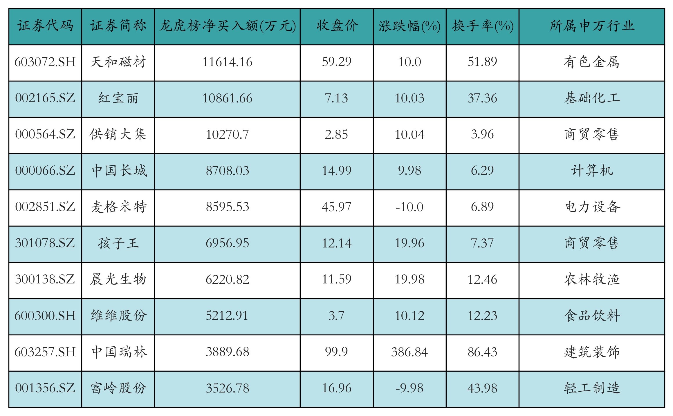 昨日龙虎榜营业部净买入额前10详情见下表: